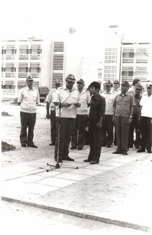 Слева направо: полковник М. А. Титенок – командир 922-го ПМТО, вице-адмирал А. А. Кузьмин – командир эскадры, капитан 1 ранга Ву Лапп – командующий 4-м ВМР ВМС СРВ. Từ trái sang phải: Đại tá MA Titenok - Tư lệnh 922 PMTO, Phó đô đốc A. Kuzmin - chỉ huy trưởng của đội, Đại úy Ngô Lập - chỉ huy trưởng Hải quân vùng 4 BMP Việt Nam.